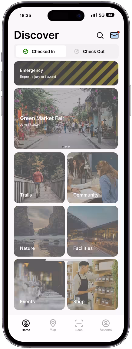 In addition to the check-in/out system, ThePark App includes a crucial safety feature: Hazard/Accident Reporting.